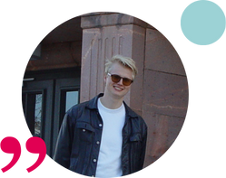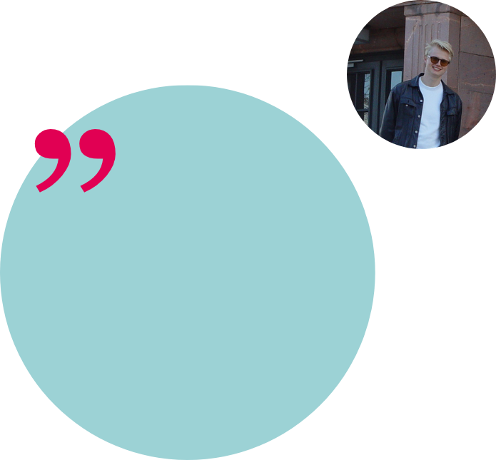 Ich finde an meinem Studium die kleinen Kursgrößen sehr gut. Ich kenne die Leute, die links und rechts von mir im Hörsaal sitzen und dann tauscht man sich in den Pausen auch mal aus.