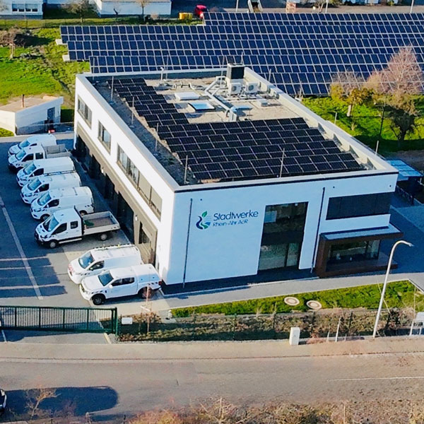 Luftansicht des Betriebsgebäudes der Stadtwerke Rhein-Ahr AöR